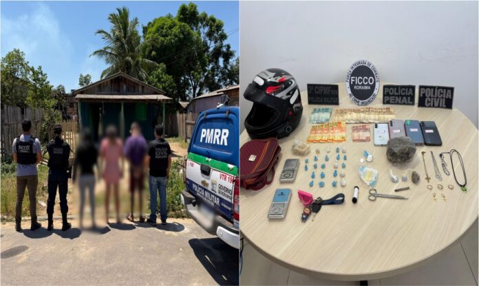 Três pessoas foram presas em flagrante durante uma ação integrada das forças de segurança que desarticulou um ponto de comercialização de drogas em Rorainópolis, no sul de Roraima. As informações foram divulgadas pela Polícia Civil nesta quarta-feira (4).
