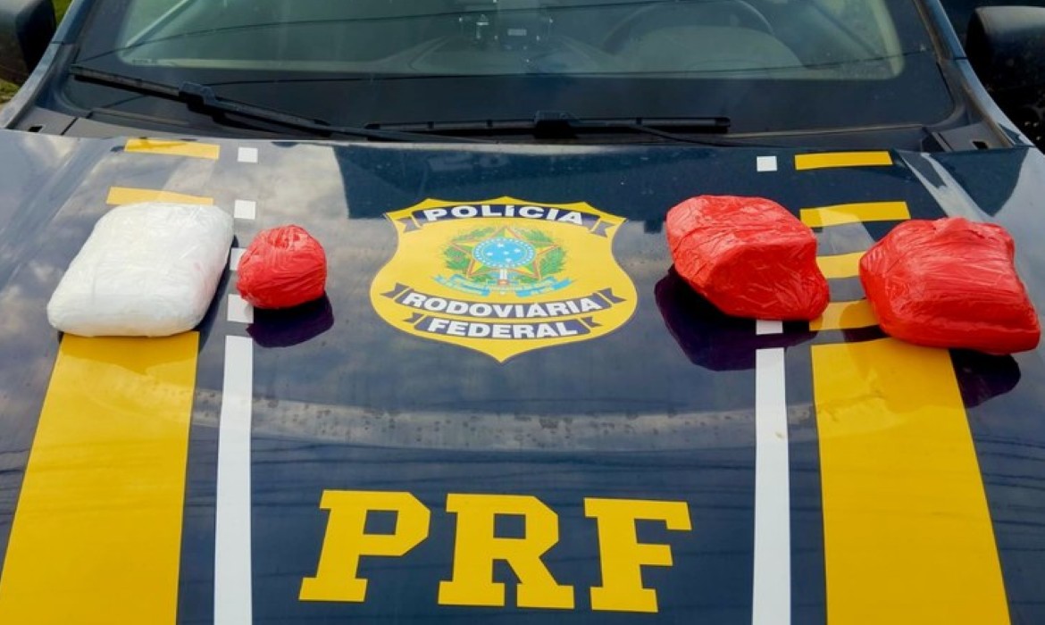 Os agentes informaram que a passageira tentou descartar parte da droga no banheiro do veículo, mas os policiais encontraram dois pacotes de entorpecente. Durante a busca pessoal, outros dois pacotes foram encontrados presos ao corpo da suspeita.